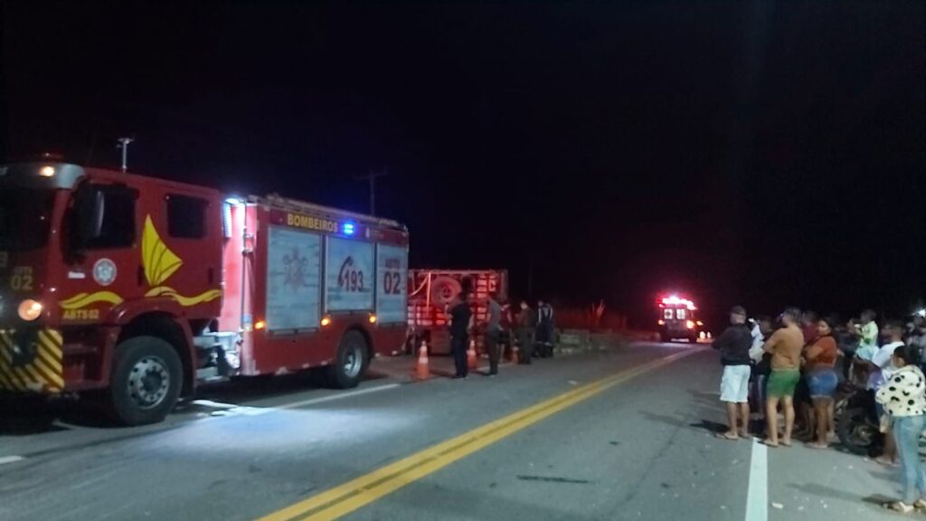O veículo de passeio bateu de frente com um caminhão que se deslocava no sentido oposto. O caminhão tombou para fora da via, conforme informações iniciais repassadas pelo Corpo de Bombeiros do Estado do Ceará.