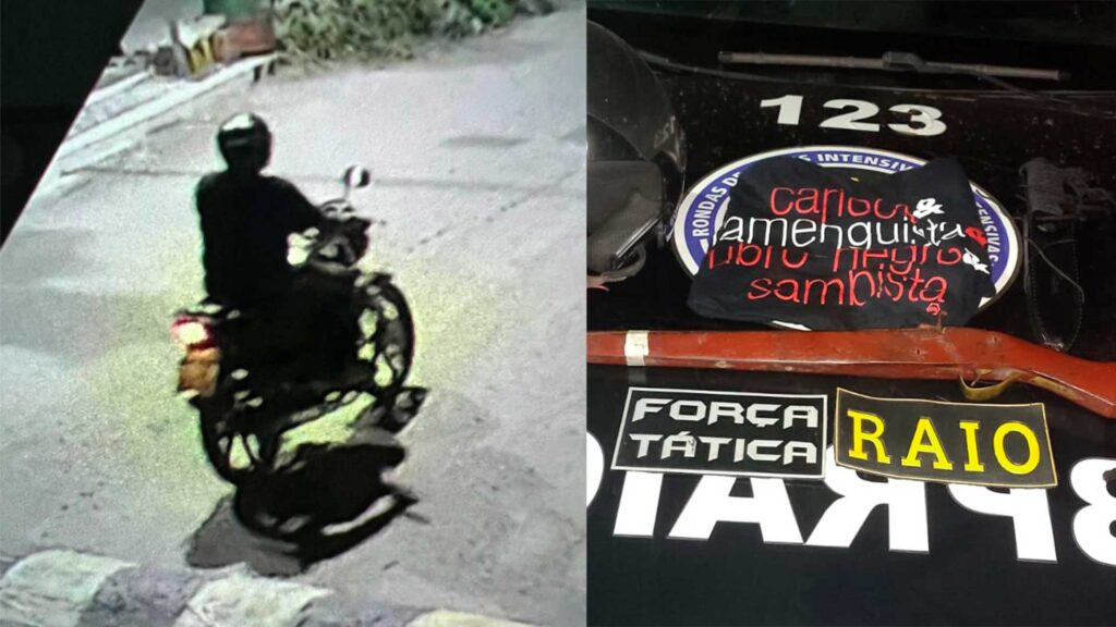 Após serem feitas a revista pessoal e uma varredura no local foram encontrados uma espingarda tipo socadeira, uma faca que foi supostamente usada para render a vítima no dia do ocorrido e um celular. Ao ser indagado sobre onde estaria a motocicleta e o capacete usado no dia do ocorrido, o suspeito teria afirmado que estaria na casa de seu pai também na localidade de Riacho do Mel. Que foi feito deslocamento até o local, onde foi encontrado os objetos citados.
