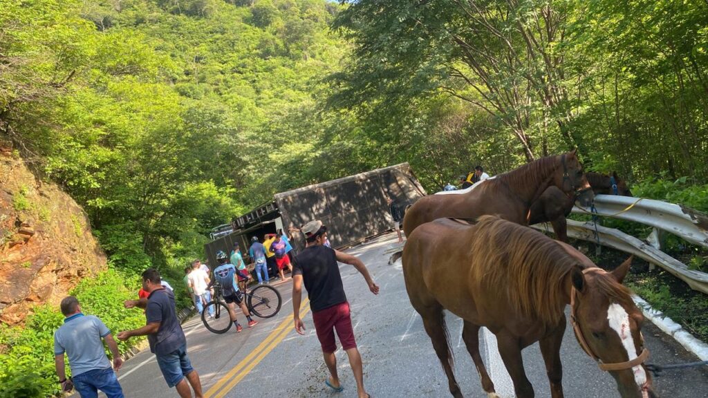 Um caminhão que transportava cinco cavalos de alto valor tombou no quilômetro (km) 300 da BR-222, no município de Tianguá. De acordo com a Polícia Rodoviária Federal (PRF), o caminhão tinha como destino a cidade de Caucaia, na Região Metropolitana de Fortaleza. O motorista sofreu lesões leves. Já dois dos cavalos tiveram danos graves, segundo a PRF.