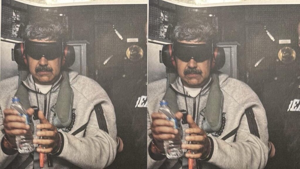 O presidente dos Estados Unidos, Donald Trump, publicou neste sábado (3) uma imagem na sua rede social, a Truth Social, que mostra o presidente da Venezuela, Nicolás Maduro, em cativeiro a bordo de um navio da Marinha americana.