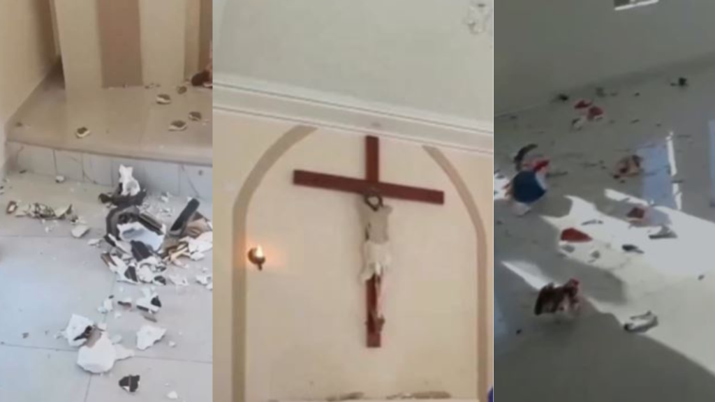 Imagens do local mostram diversas esculturas sacras e outros materiais do local quebrados. O caso ocorreu por volta de 16h30, em uma Igreja localizada na rua Santa Luzia.
