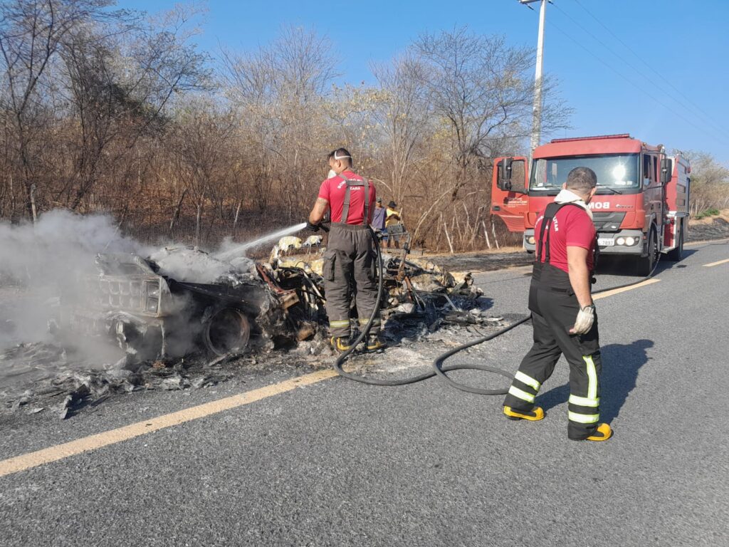 O Corpo de Bombeiros Militar de Ipueiras foi acionado para atender a uma ocorrência de incêndio veicular no caminho que dá acesso ao distrito de Canindezinho, em Nova Russas.