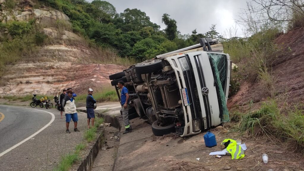 Um caminhão baú que transportava frios tombou na manhã desta quarta-feira (10) na Ladeira da Matriz de São Gonçalo, na CE-257. Segundo informações, uma falta de freios na descida ocasionou o acidente. O Samu esteve sendo acionado para o local, mais dos três ocupantes ninguém ficou ferido.