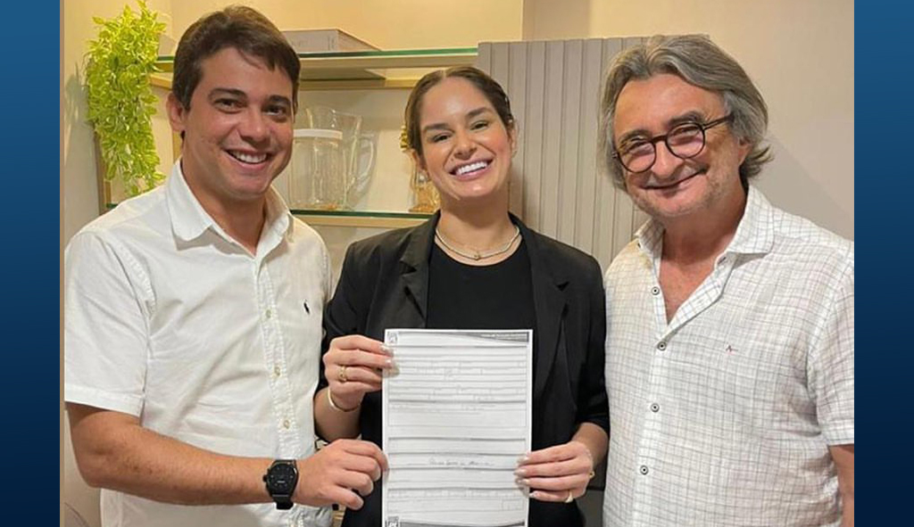 O anúncio foi feito pelo partido, nas redes sociais. Na foto, Pâmella aparece ao lado do deputado federal Junior Mano e do presidente do PL Ceará e prefeito do Eusébio, Acilon Gonçalves.