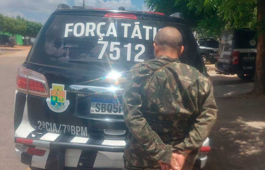 Na manhã deste domingo (04/12), as forças policiais do BPRAIO/Nova Russas, POG e Força Tática/Nova Russas realizaram uma operação conjunta que resultou na prisão de Antônio Valderi de Sousa, 48 anos, residente na localidade de Riacho Lagoa do Mel, Ararendá.