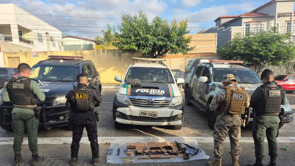 Com o bando, os policiais apreenderam fuzis, pistolas, revólveres, granadas, um veículo e dezenas de munições.