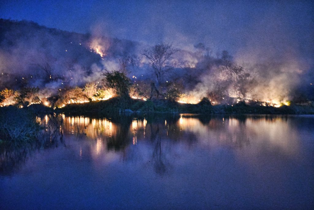 Veja o vídeo do combate ao incêndio na vegetação próximo ao açude