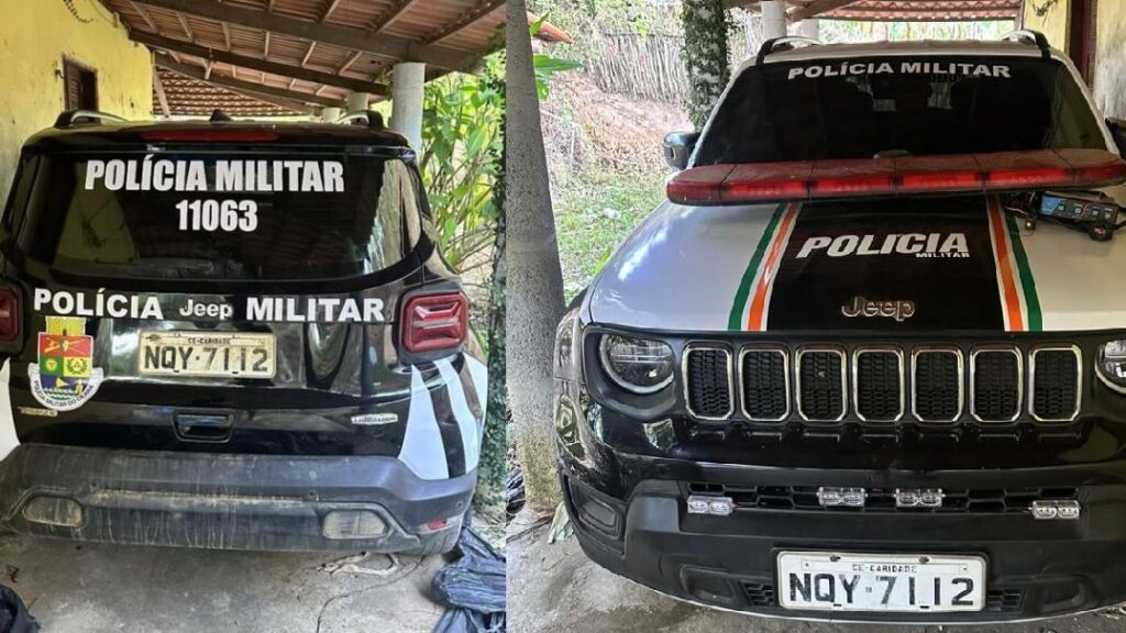 Ao vistoriarem o sítio, os PMs encontraram um carro coberto por uma proteção. E, ao descobrir o veículo, os agentes se depararam com um Jeep Renegade adesivado como uma viatura da Polícia Militar.